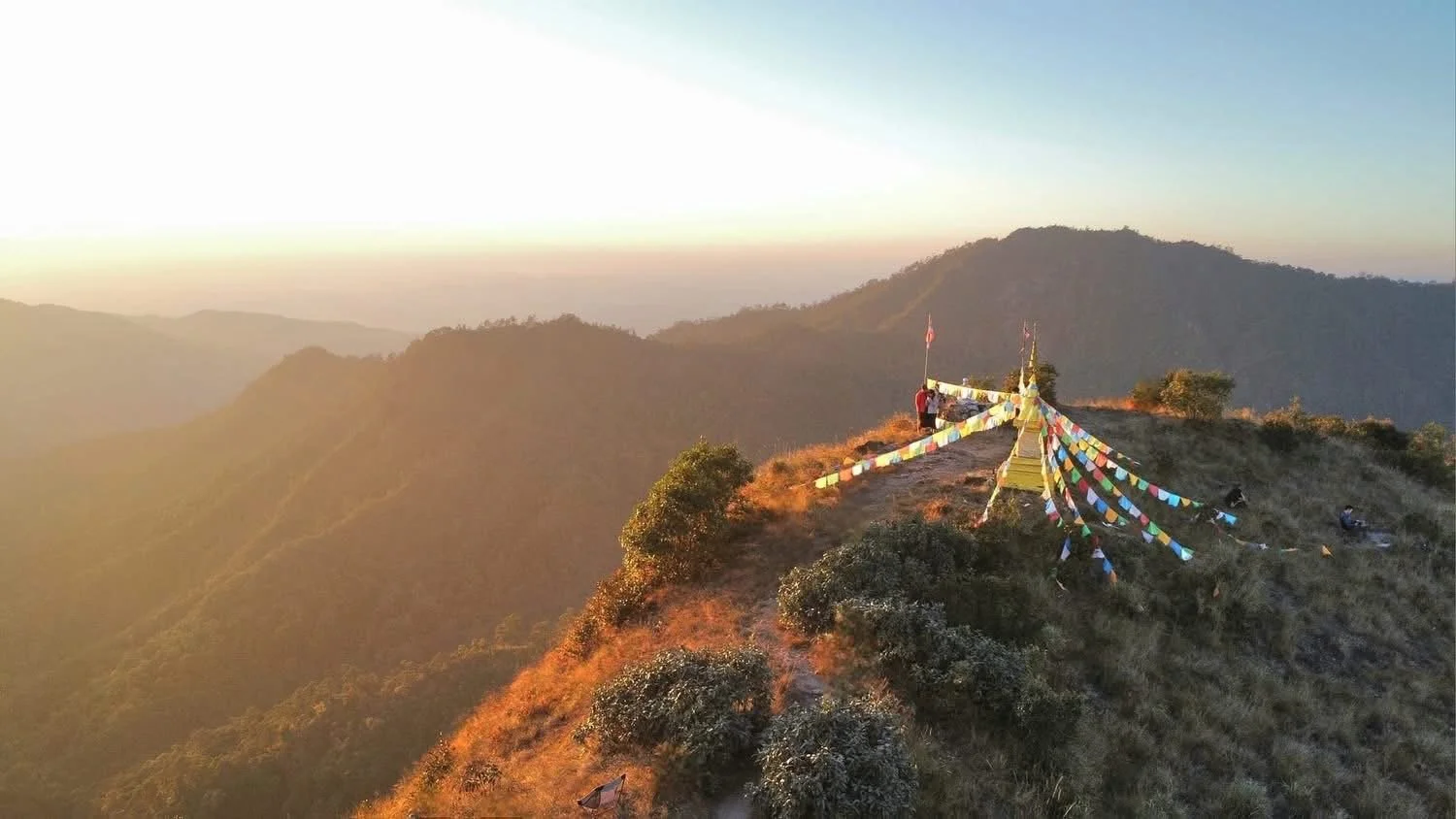 By mid-afternoon, we arrive at Doi Lang Noi camp, set up tents, and rest. In the evening, we hike to the summit (1,800 m) to watch sunset and visit the small hilltop temple. The exposed summit offers sweeping views and strong winds — warm layers are essential.