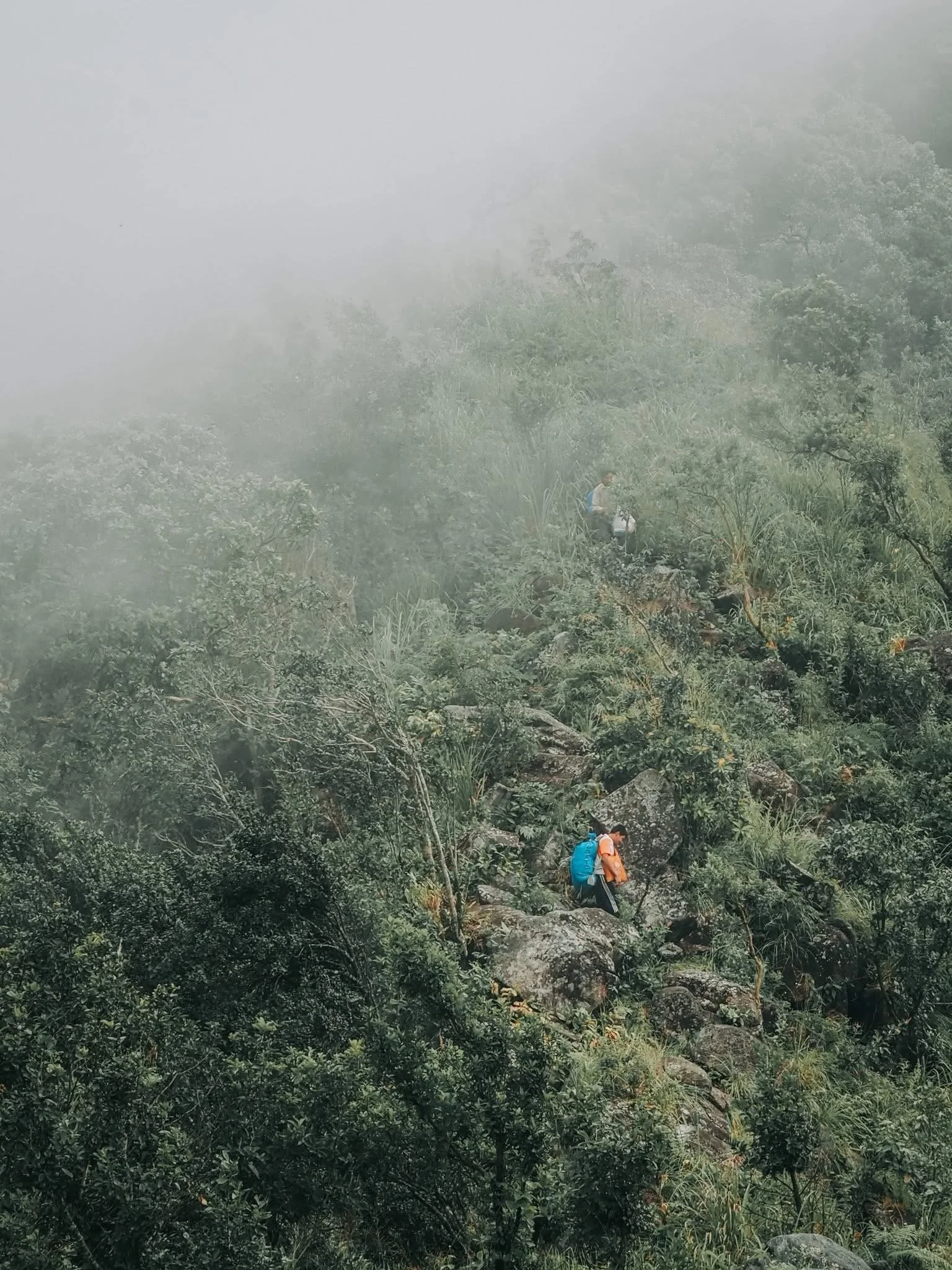 After breakfast, we pack up camp and begin the descent through dense forest. The trail is steep and can be slippery, requiring steady footing and occasional use of hands.
