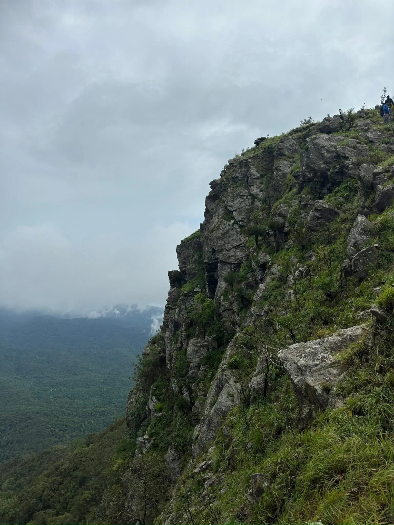 We stop for lunch along the trail before continuing through forested ridges and occasional cliff-side sections. After passing the Stone Gate, the trail becomes steeper as we ascend toward the Three-Leaf Pine Ridge.