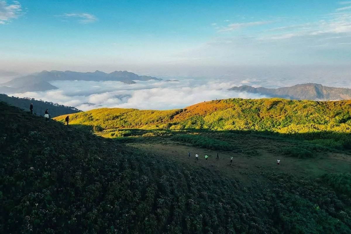 The trek starts through pristine forest, gradually climbing toward Wawajo Ridge and onward to Pui Luang Peak. The final stretch opens to wide ridgelines and dramatic views stretching across layers of mountains.