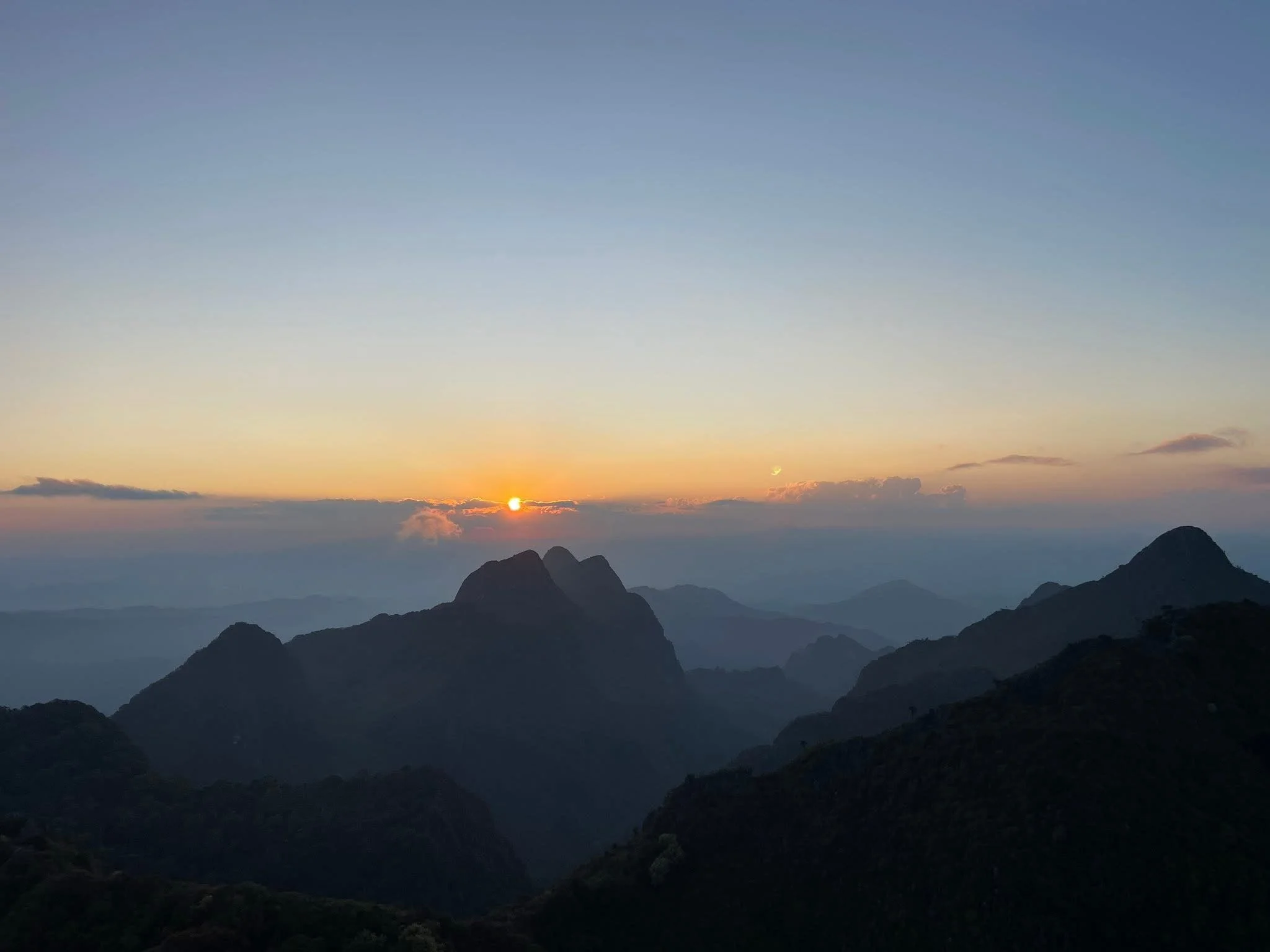 Final sunrise at Loe Jo Peak before descending back to the pickup point. Transfer by 4WD to town, lunch, and onward transfer to Chiang Mai.