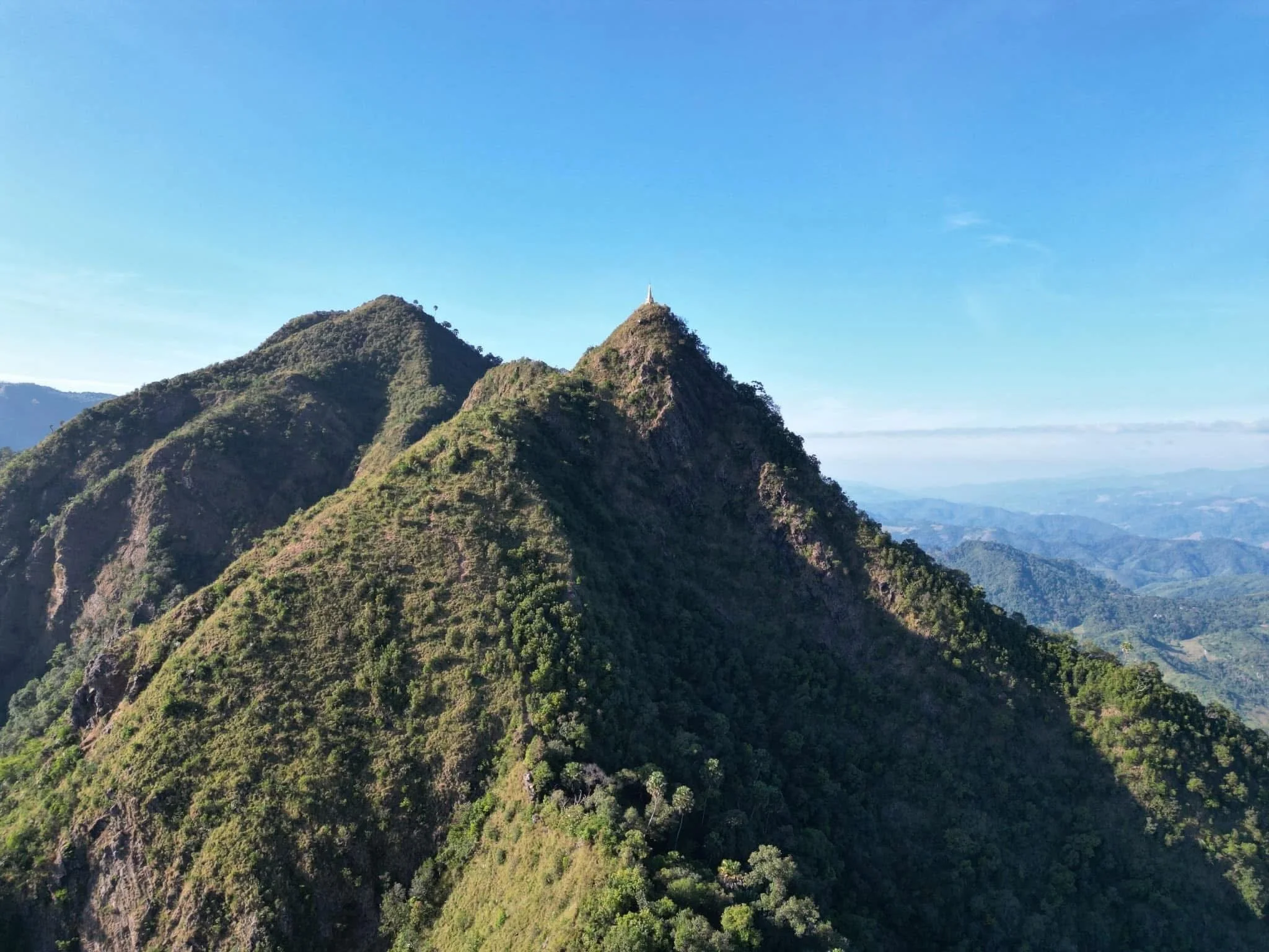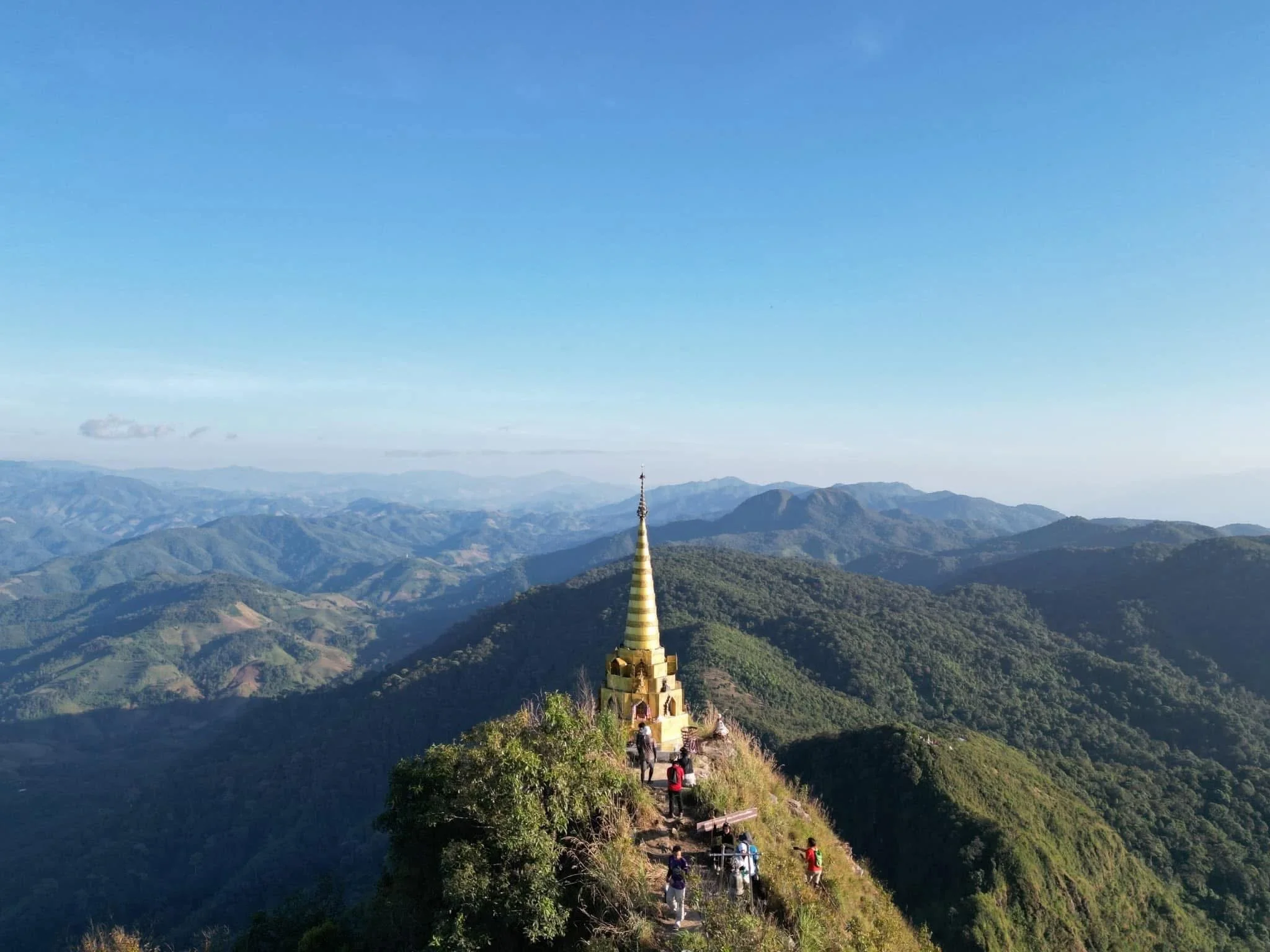 Rising quietly above the forests of Mae Moei National Park, Le Kha Dao is a mountain deeply revered by the local community. At its summit stands a sacred golden chedi, believed to house holy relics, making this peak not only a natural landmark but also a place of faith, reflection, and spiritual significance.