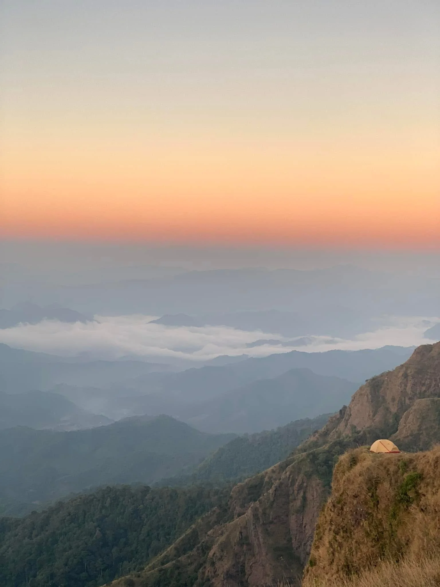 We wake early for sunrise, with the possibility of sea of mist drifting through the valleys below. After a light breakfast with coffee, we enjoy a final full meal together before packing up camp.